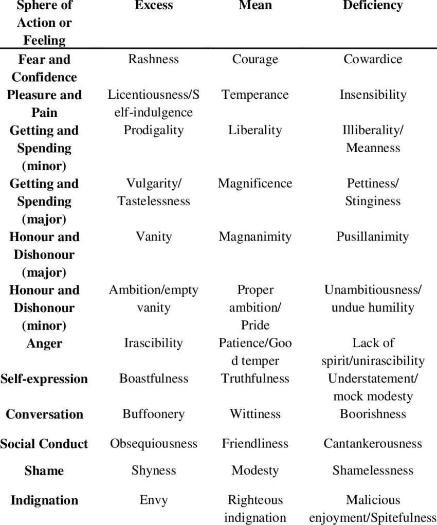 Aristotle’s list of virtues might look a bit strange today. Of his twelve virtues, some look familiar: things like courage and truthfulness are just as important to us today as they were in his time. Others might look a bit odd—things like wittiness might not seem like “virtues” in the proper sense